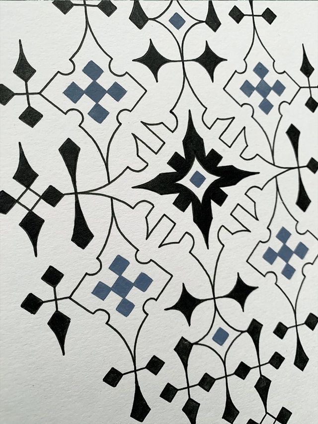 "Les dendrites minérales sont des structures qui se forment spontanément lors de la croissance des cristaux dans des conditions de "non-équilibre" Par cette série de peinture, j'ai essayer d'interpréter et retranscrire cette "cristallisation" sur le papier de manière instinctive, dans l'équilibre de cette transformation complexe à la symétrique imparfaite.